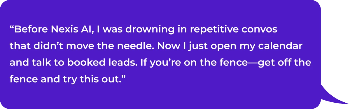 The result: an AI assistant that works 24/7, engaging every lead in real-time with human-like conversations over SMS, web chat, Facebook Messenger, email and more. It never forgets to follow up, never takes a day off, and never misses a lead. Give your clients a huge value boost by filling their calendars and closing more sales without any extra hiring or effort. (And yes, Nexis AI is fully white-labeled for agencies – brand it as your own and resell an entire AI assistant service at whatever price you want!)